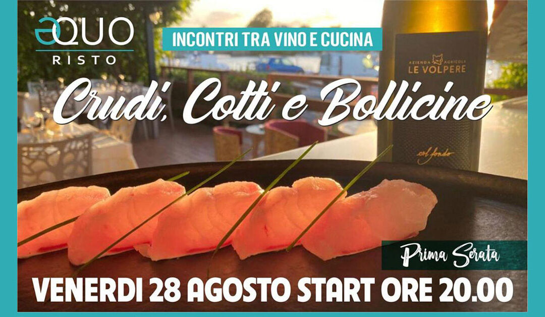 “Crudi, Cotti e Bollicine” segna l’inizio di un nuovo ciclo di cene e percorsi degustazione da Equo Risto Fiumicino-Ostia. Prenota per la serata del 28 AGOSTO alle 20.00 e inizia il tuo viaggio negli abbinamenti tra buona cucina di Federico Regano e le straordinarie bollicine selezionate da Luca Cristaldi.