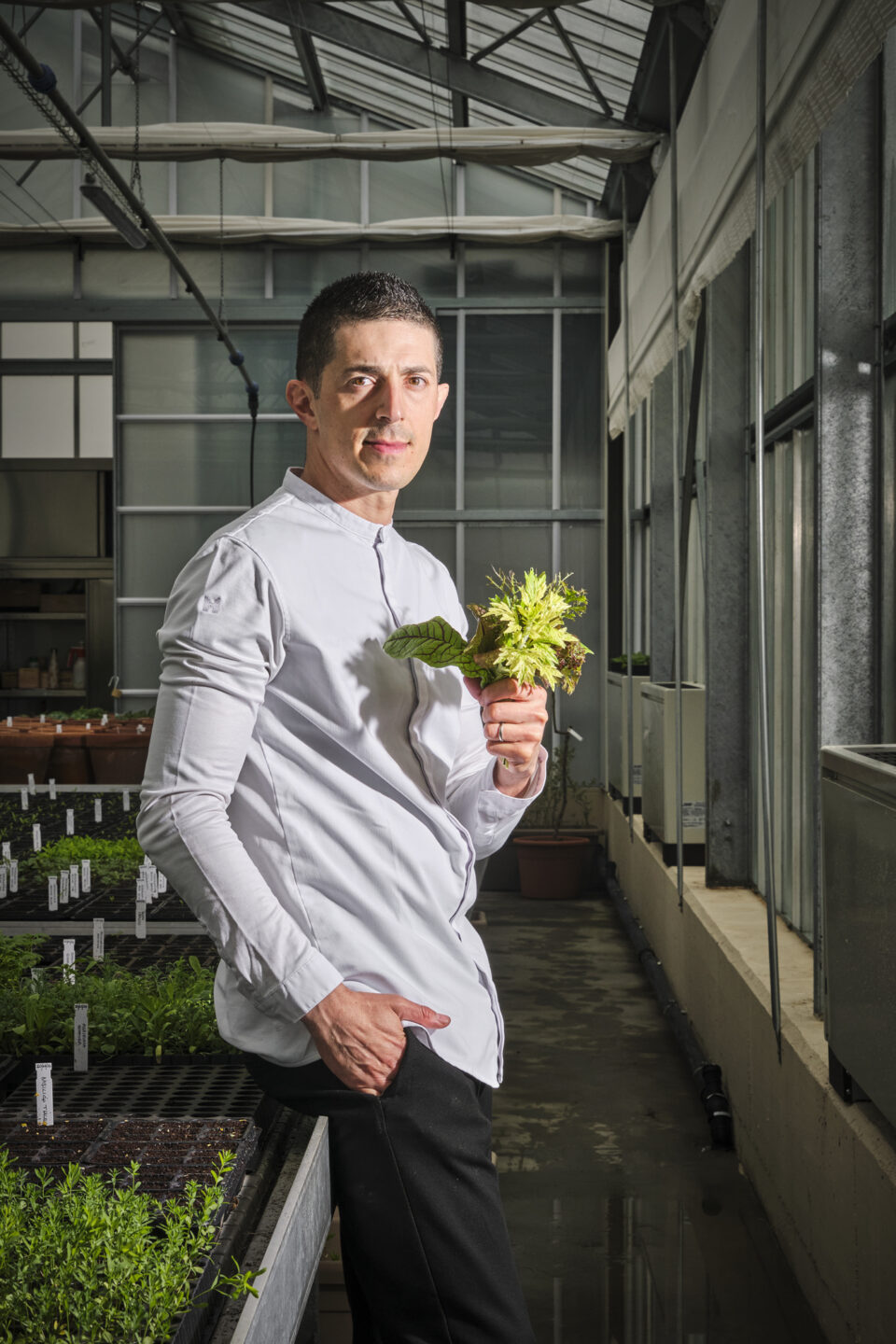 Lo chef Mammoliti propone la sua idea di cucina incentrata sull’elemento vegetale tra erbe aromatiche, spezie, radici e specie vegetali autoprodotte