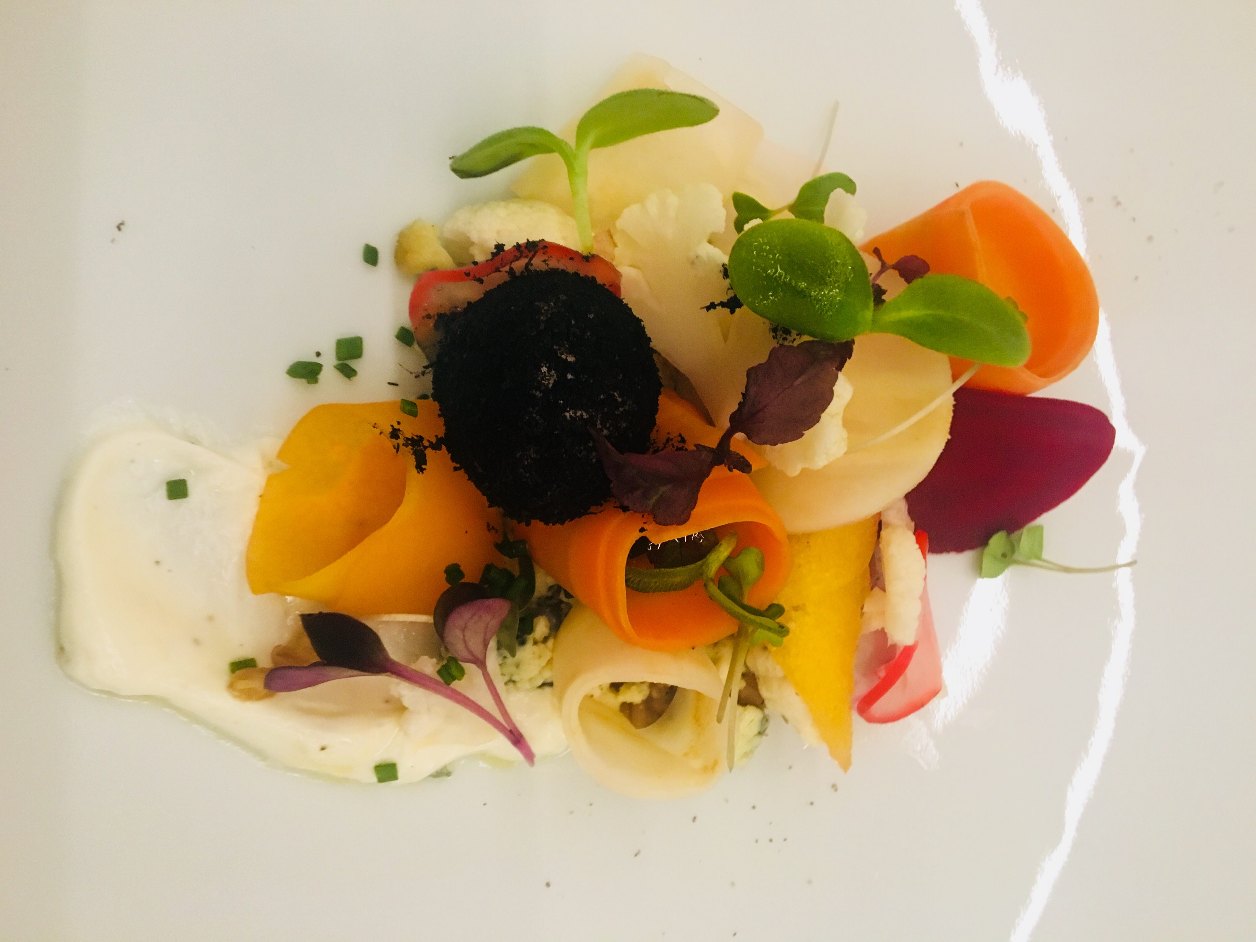 La cucina di Hirst ha una forte identità internazionale, rispecchia tutte le sue esperienze estere, soprattutto in Inghilterra e Francia. I piatti nel menu di cucinaMusia sono pochi ma attentamente studiati e serviti in maniera impeccabile. Due i carpacci, uno autunnale con uovo di quaglia, aqua di siero e farro, un’altra invece con gambero rosso di Mazara, salsa di ricci, lattuga di mare e salicornia. Ottimi i ravioli del plin al brasat con salsa di zafferano e spinacini.