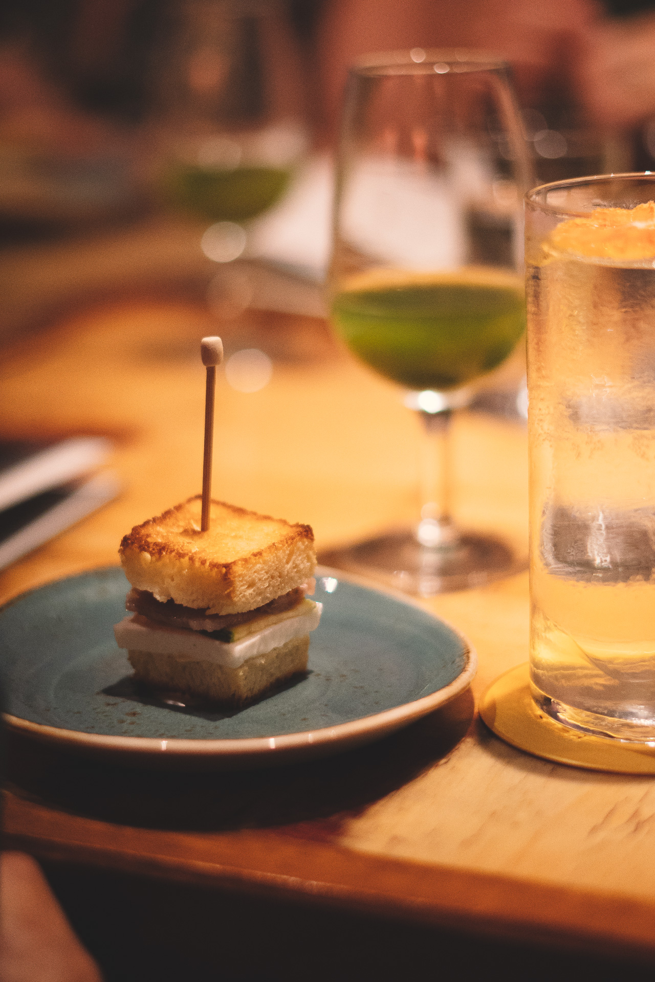 Un incontro tra l’ italian style e i distillati giapponesi in perfetta armonia e bilanciamento, partendo per esempio dal ghiaccio utilizzato per il primo cocktail: “This is not a japanese highball”, personalmente creato da Kawakubo con una tecnica precisa e manuale, che scolpisce in forma ottagonale (numero sacro e ricorrente in Giappone ) grossi pezzi di ghiaccio che andranno ad immergersi perfettamente nel bicchiere utilizzato per questo cocktail, appunto l’ highball. Il nome del bicchiere alto, in cui tutti abbiamo sorseggiato un cocktail, in mixology rappresenta un long drink a base di distillato, soda e ghiaccio. I giapponesi usano chiedere un highball richiamando il whisky & soda, ma qui Yasuhiro Kawakubo lo reinterpreta esaltando il Nikka Coffey Malt con passion fruit, yogurt, orange e tonica. Un distillato vellutato ed elegante che arriva al palato morbido, evocando miele e frutti maturi, rafforzato appunto dal passion fruit. Questo cocktail fresco e ben bilanciato di gradazione alcolica, è perfetto come aperitivo ad ogni ora e inizio serata. Perfetto è anche l’abbinamento con il food creato dallo chef di Drink Kong Francesco Coltella: un sandwich di tonno, maionese al sesamo piccante, zucchine, primo sale e fichi. Lo yogurt del cocktail va perfettamente in risposta al piccante della maio, creando una rotondità di sapori che ben si sposa con la versione rinfrescante di questo distillato.