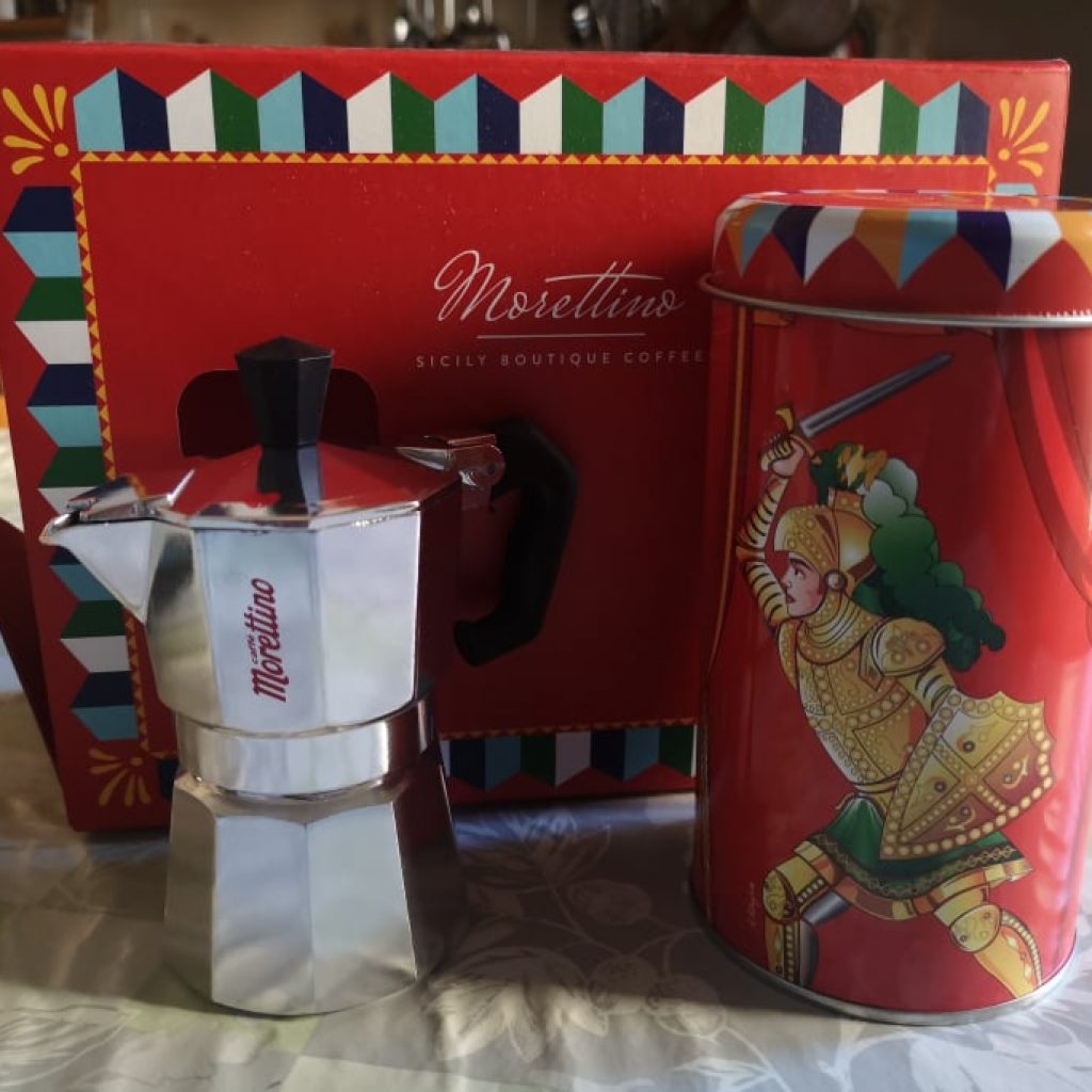 Per il caffè ci affidiamo alla storica torrefazione palermitana Caffè Morettino che ha scelto il simbolo siciliano per antonomasia, l’Opera dei Pupi, per celebrare l’isola e la sua cultura millenaria. In occasione del Centerario, infatti, che ricorre proprio quest’anno, e del lancio del nuovo shop on line, Morettino celebra le proprie radici con un cofanetto in edizione limitata dedicato ai Paladini dell’Opera dei Pupi siciliani. Le “Gift Box Sicily” sono coloratissime confezioni create da designer palermitani che riprendono alcuni decori tradizionali presenti nei carretti siciliani. Al loro interno il richiamo alla tradizione locale: una miscela speciale di caffè creata dai maestri torrefattori Morettino racchiusa all’interno di una latta raffigurante i Paladini siciliani e una moka. Un invito a riscoprire il caffè preparato con la caffettiera, rituale antico radicato nella memoria dei siciliani, simbolo di accoglienza e di convivialità. Le latte sono un omaggio all’Opera dei Pupi e ai suoi tre protagonisti principali: Orlando, Rinaldo e Angelica.