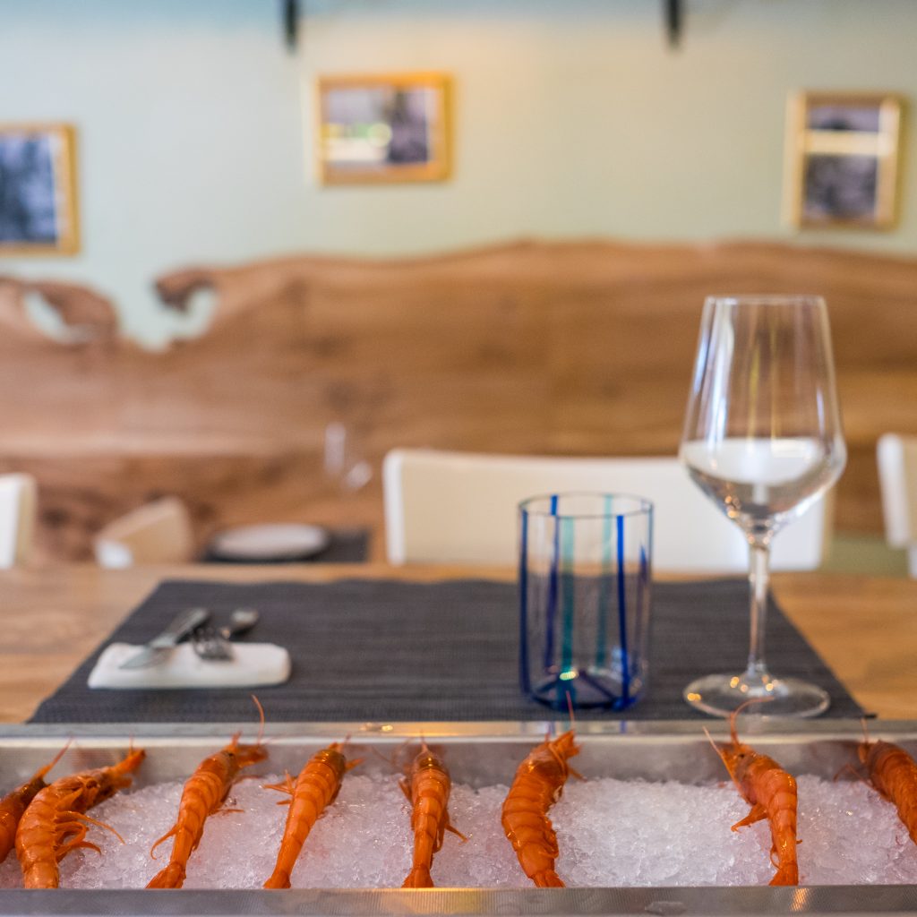 Il tutto arricchito da una serie di affumicati e marinati come alici e sarde del Cantabrico e sgombri, gamberi rossi, viola, Scampi di Manfredonia, bulot e crevette.