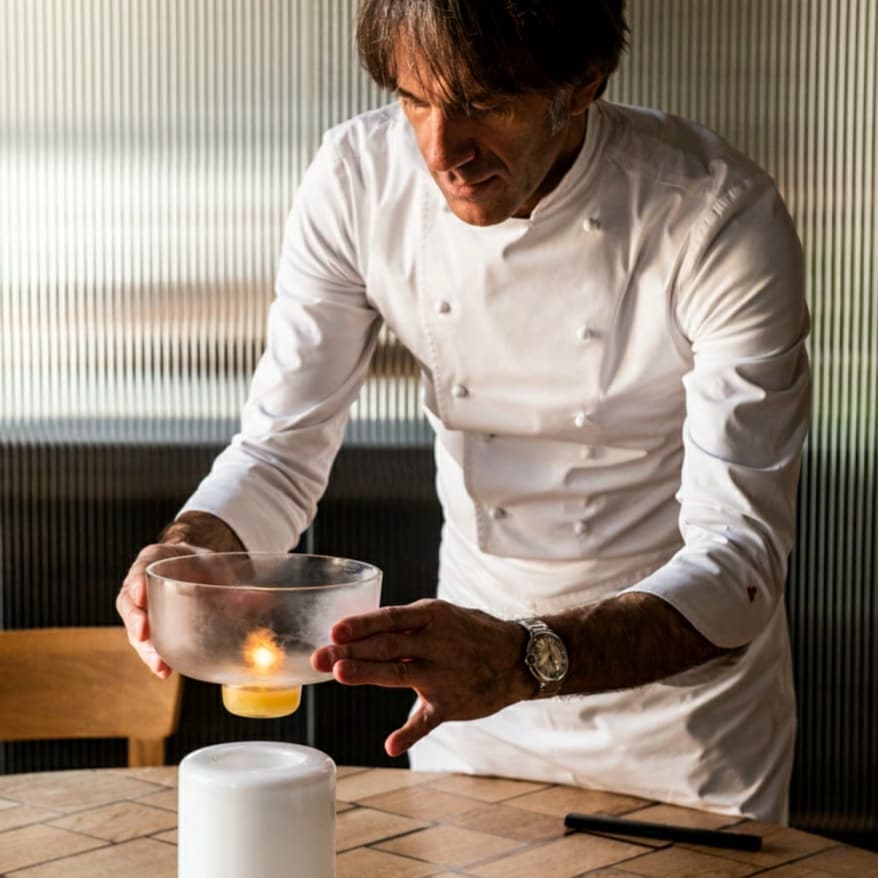 “Quando ho iniziato avevo solo i risparmi delle mie esperienze in giro per il mondo. Quando ho aperto il D’O era l’autunno del 2003 non avevo più un soldo in banca. Da allora a oggi tutto ciò che è avvenuto è dovuto al lavoro costante di tutta la brigata. Aver ottenuto la prima stella Michelin dopo un solo anno dall’apertura è stato innegabilmente una bella iniezione di adrenalina. Ma è stato l’anno seguente, nel 2005, che ho acquisito maggiore consapevolezza delle mie potenzialità e dell’importanza del lavoro di squadra”.