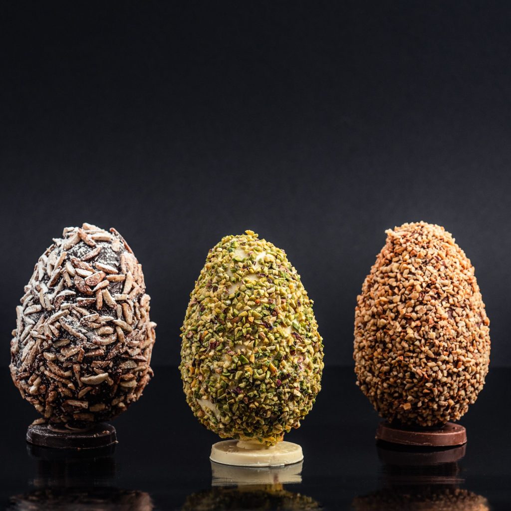 Se Valerio Esposito ha deciso che la Colomba di Divino in ricordo del primo viaggio alla scoperta del mondo delle piantagioni di cacao; Jennifer Boero quest’anno ha dato sfogo alla fantasia animando le vetrine di Divino con galli, coniglietti, scimmiette ed elefanti realizzati in cioccolato fondente, al latte e bianco per soddisfare ogni richiesta e le immancabili uova finemente decorate. Accanto ai must, troviamo novità di Cioccolati e gusti esotici con ananas, mango, zenzero e arancia disidratata e l’Uovo al caramello realizzato con un guscio di cioccolato, al latte che racchiude un morbido inserto in caramello con fodera in cioccolato fondente. Possibilità di personalizzare il regalo all’interno. www.divinocioccolato.it