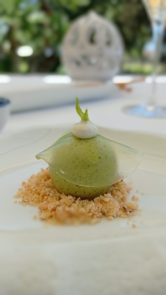 “Sono fortunato. Il mio pastrychef Andrea Marano ha metabolizzato la mia linea di cucina per sfumarla con un gran finale di pasticceria. Preparazioni che appaiono semplici sulla carta, ma che presuppongono grande tecnica dietro. È bravo e me lo tengo stretto.”