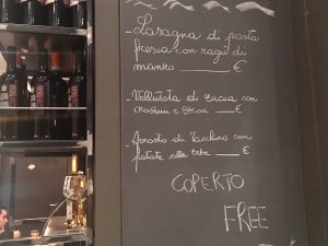 I piatti della carta sono disponibili anche a pranzo, con uno sconto del 10%. Non mancano proposte giornaliere  – scritte rigorosamente sulla lavagnetta – secondo le disponibilità del mercato. Una buona idea per sentirsi coccolati e “staccare” durante una frenetica giornata lavorativa: i piatti della mamma fanno dimenticare qualsiasi preoccupazione!