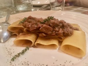 Anche i primi sono ricchi di sapore come gli Spaghettoni freschi cacio e pepe, le Orecchiette con pomodoro fresco, rucola e ricotta salata, il Raviolone di magro al burro di nocciola guanciale croccante e timo, la lasagna di pasta fresca alle verdure di stagione.