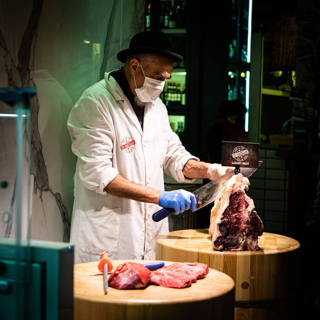 Nomen Omen per “Er Macellaio”. Il locale infatti a garanzia della sua selezione vanta la presenza di un vero macellaio con 50 anni d’esperienza, Luigi “THE BUTCHER” Miscioscia.