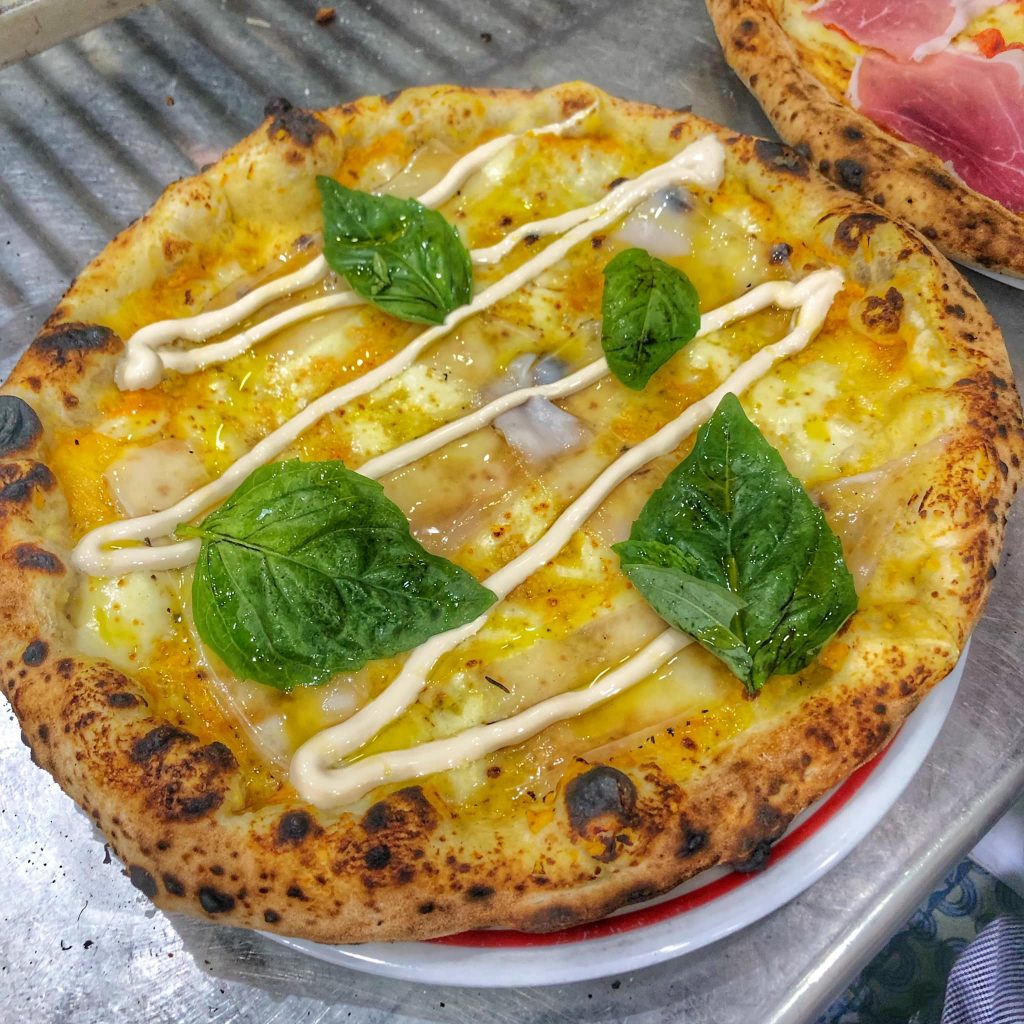 Idratazione spinta ed impasto indiretto, con una miscela personale che incrocia tre tipi di farine del Mulino Caputo. La pandemia, per Errico Porzio, si è tradotta in studio e sperimentazione. Oggi l’offerta vanta anche un prodotto senza glutine che, udite udite, si può davvero chiamare pizza. Materie prime regionali, birre comprese. “Sto puntando sulle birre artigianali e lo faccio con due birrifici campani. Voglio che il filo conduttore resti sempre riconoscibile”.