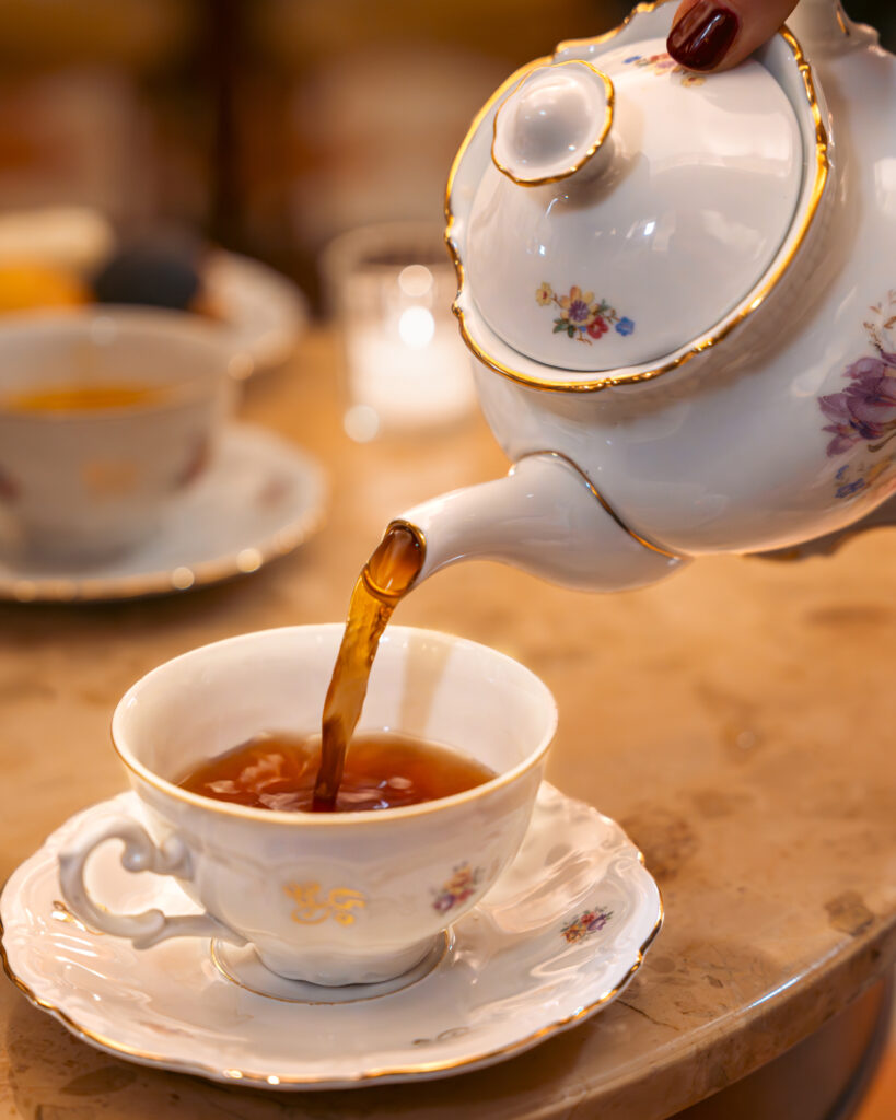 Un piccolo rifugio urbano, dunque, ideale per il periodo freddo ormai alle porte, che dalle ore 16:00 alle 18:30 accoglierà in uno spazio allestito il stile british tra luci soffuse, tavolini rotondi in marmo, sedute in velluto e morbide piantane dal cappello crema. Una tea light accesa su ogni tavolo, e tazze vintage in porcellana decorate da delicati fiori pastello evocano l’incanto di un tè all’inglese.