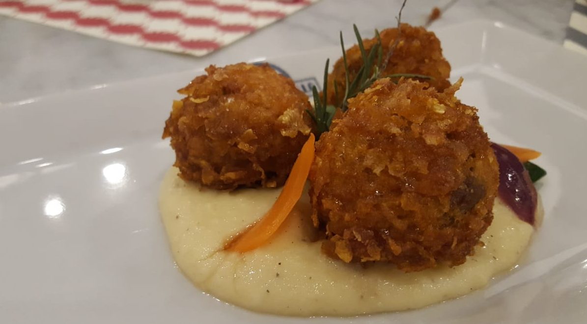 Tra i secondi, imperdibili le Polpette di bollito, panate e fritte e accompagnate da purè di patate e verdure in agrodolce (14).