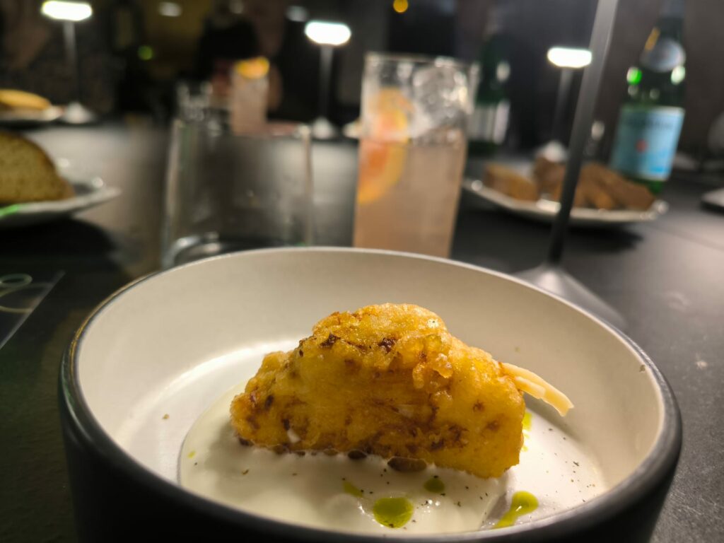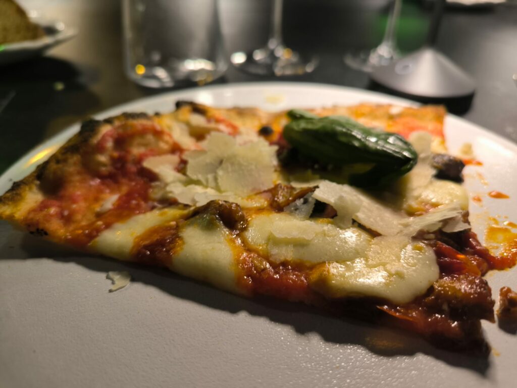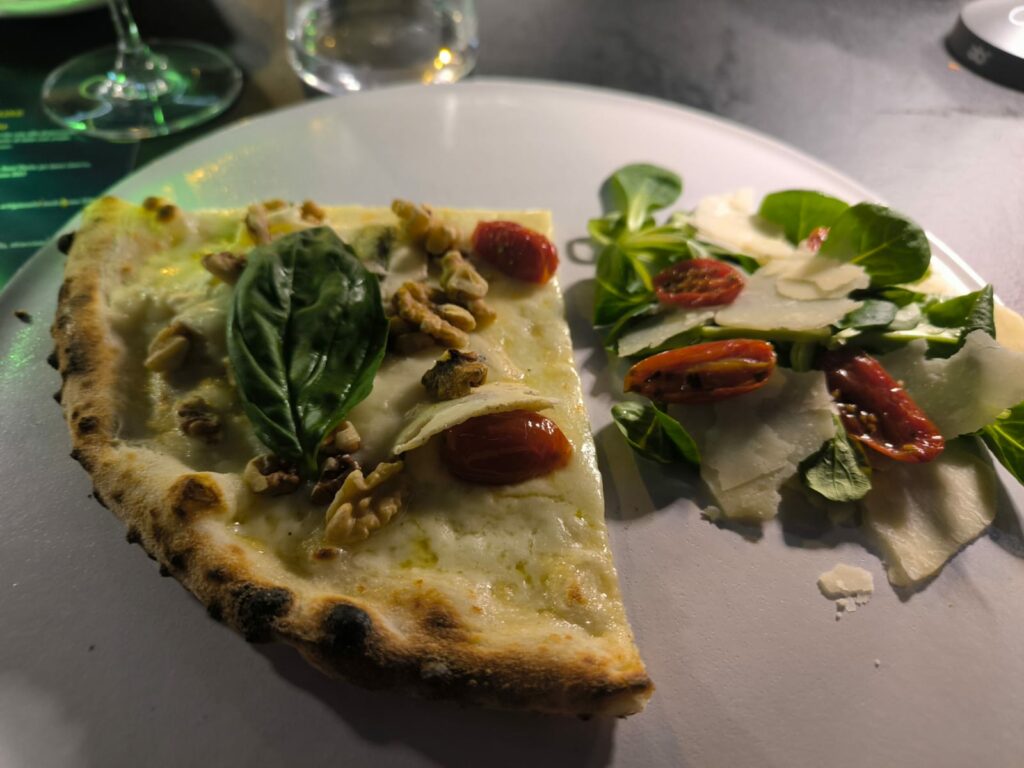 Sebbene la pizza rappresenti il core business del locale, esiste un menu strutturato che include antipasti, primi e secondi piatti di pesce e di carne, accompagnati da contorni legati alla stagionalità e al territorio. Una proposta che valorizza le eccellenze locali attraverso una cucina riconoscibile ed equilibrata, in dialogo costante con l’identità del locale. Il percorso gastronomico si completa con una selezione di dessert firmati dallo Chef, pensati per offrire un’esperienza coerente e completa.Tra gli antipasti da non perdere la Frittatina di pasta cacio e pepe con spuma di pecorino, servita con olio al prezzemolo; le crocchette di latte, il cacio all’argentiera e il tacos vegetariano.