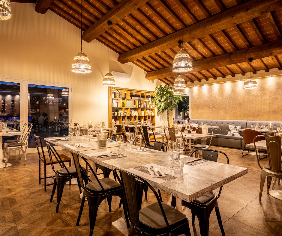 Qui Gabriele ha posto la base, con grande coraggio visto il momento economico che stiamo attraversando. La location è un casale ristrutturato con tanto di piscina e vetrate panoramiche. L’ampio ingresso accoglie piacevolmente con un angolo dedicato agli aperitivi e cocktail abbinati alla degustazione, chiamato Pizza-Table.