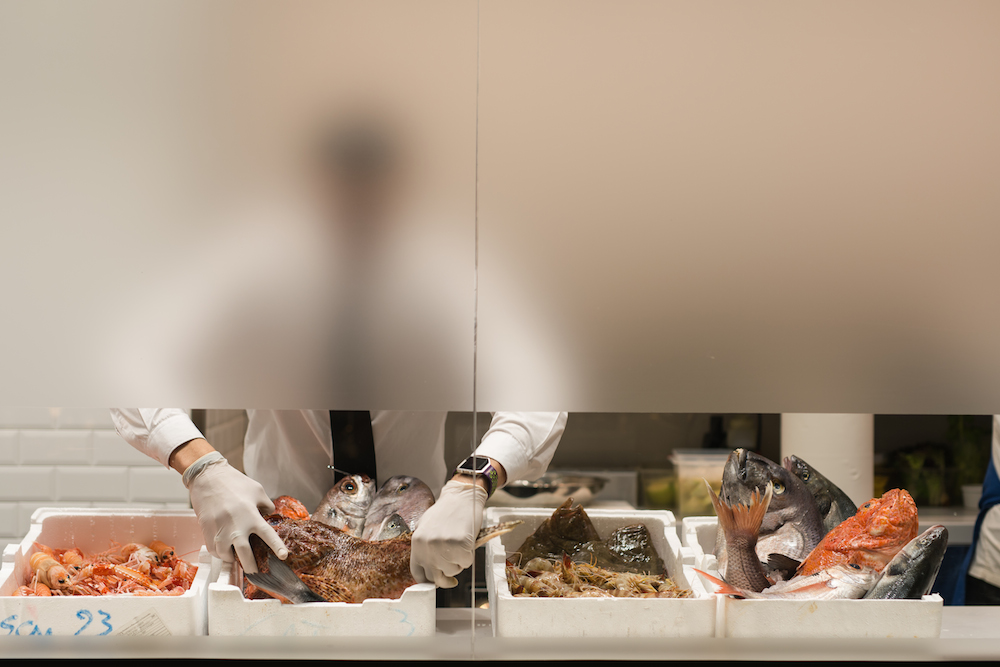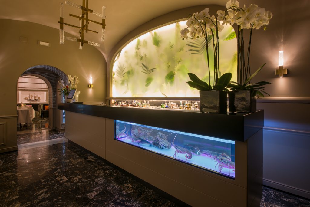 Varcarne la soglia, lascia senza fiato. Si accede, infatti, camminando attraverso un giardino incantato. Superate le piante verdi, lo sguardo viene subito attratto dal grande acquario colmo di astici e aragoste e dallo straordinario banco del pescato del giorno.