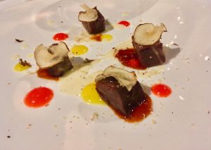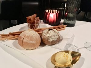Che Morelli sia uno fuori dagli schemi lo capisci subito, anche se non lo conosci. Infatti, dopo pochi secondi che sei seduto al tavolo arriva e dice: “Vi presento il mio pane”. Ed ecco, in un cestino, due pagnotte di pasta non ancora cotta, una preparata con bianca farina bio e l’altra integrale con le nocciole, che arriveranno poco dopo calde e fumanti al tavolo. Il pane, coccolato e rispettato come un figlio, diventa il primo protagonista della cena. In accompagnamento, un ricco e giallo burro di Isigny, una vera goduria. Qui capisci la filosofia prima di Giancarlo Morelli: il ristoratore deve RISTORARE, il momento del pasto non è puro esercizio di stile e di filosofia, ma un richiamo concreto ai piaceri della tavola. A partire dal pane, che diventa portata a sé.
