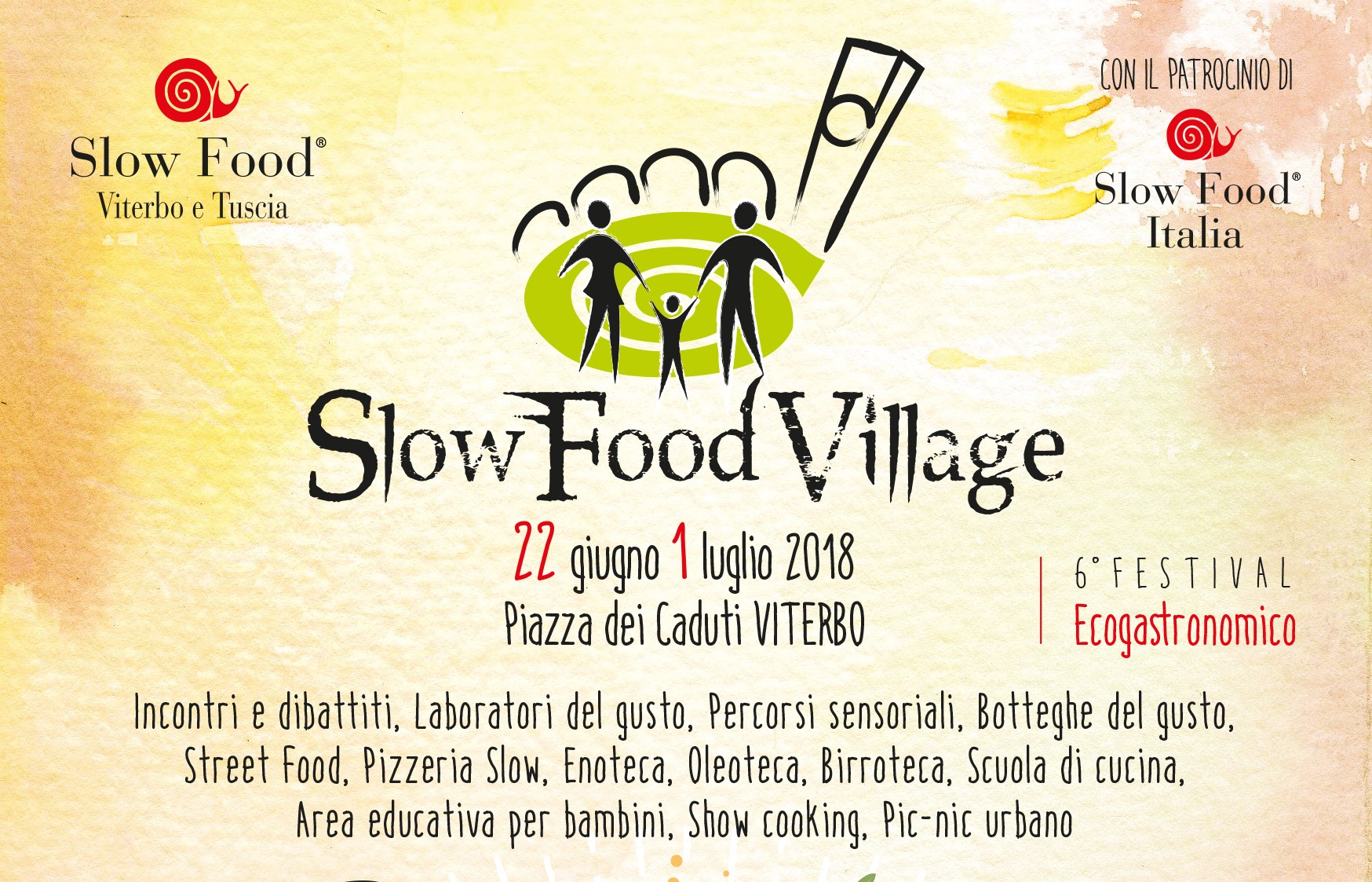 Andrà in scena dal 22 giugno al 1 luglio a Viterbo, nella grande area pedonale di piazza dei Caduti, lo Slow Food Village che, per questa edizione, avrà come tema “Il Cibo Buono, Pulito e Giusto Salva il Mondo”. Sarà una kermesse rivolta alle famiglie, ai produttori, ai ristoratori e agli appassionati. Si potrà passeggiare, partecipare agli incontri in programma, agli show cooking, ai laboratori e ai percorsi sensoriali gustando vini, birre artigianali e tanto street food.
