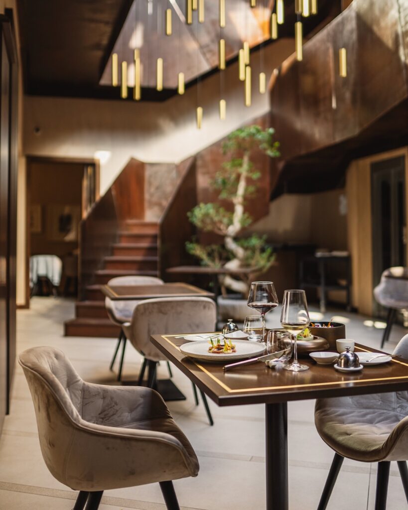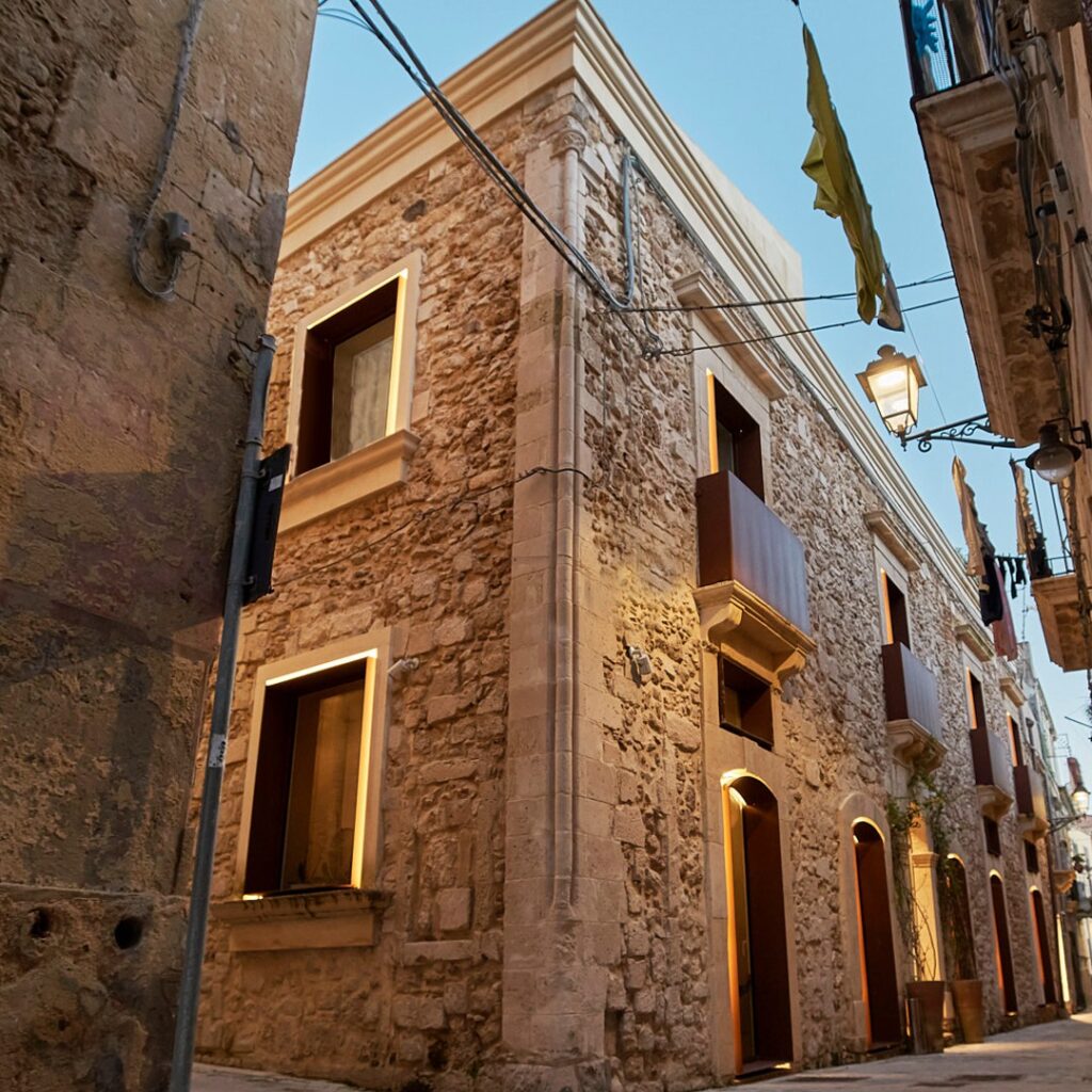 Camminare per le vie di Ortigia significa entrare nello stesso universo che ispira i suoi piatti. È un percorso lento, avvolgente, fatto di aria salmastra, note di agrumi e profumi di mare che si insinuano tra i vicoli barocchi. Un’esperienza che trova la sua cornice naturale in Palazzo Salomone, edificio dalle mura chiare levigate dal tempo e dalla salsedine, dove l’arte dell’ospitalità incontra quella del gusto. Il palazzo seicentesco è un esclusivo boutique hotel i cui interni, luminosi e raffinati, accolgono un design contemporaneo capace di dialogare con rispetto con l’anima storica del palazzo, offrendo un’idea di lusso misurato, fatto di dettagli curati e confort discreto.