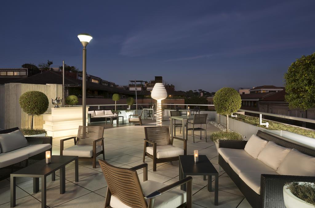 In Prati – tra Piazza di Spagna e il Vaticano – affacciato sul Lungotevere – il Bar Rooftop, al settimo piano de Le Méridien Visconti Rome, appena ristrutturato, regala una vista a 360° sulla città. Qui è possibile degustare cocktail originali e classici ascoltando la musica del Maestro Rosario Fugà, a ritmo di jazz e bossa nova.