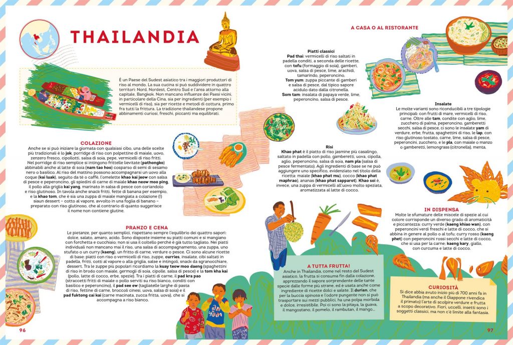 Gustomondo è un vero e proprio atlante gastronomico, illustrato da Allegra Agliardi con i testi di Alessandra Mastrangelo. Le pagine colorate riescono a evidenziare la straordinaria varietà della nostra Terra Madre, raccontata attraverso le ricette, le abitudini, le occasioni di festa e le curiosità tipiche di ogni Paese del mondo.