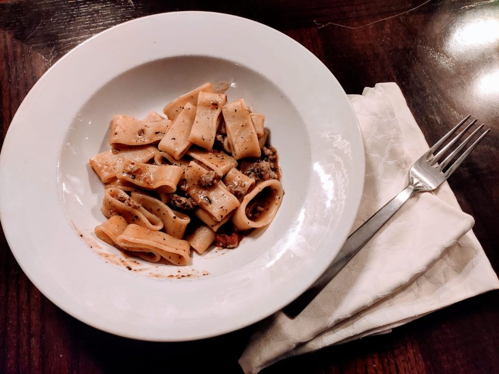 “Con il mio ingresso ho voluto caratterizzare questa cucina con ricette preparate esclusivamente da noi e, laddove possibile, al momento“. Dalla pasta fresca fatta in casa, ai sughi preparati con lunghe cotture, per arrivare a salumi e insaccati home-made, tra cui speck di anatra, pancetta e salsiccia.