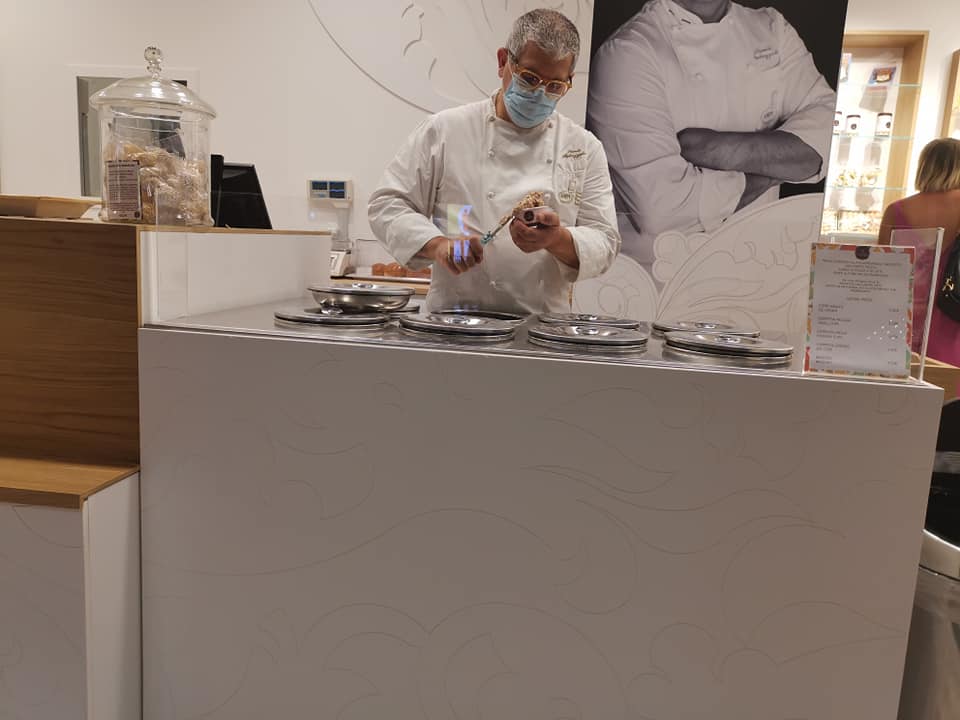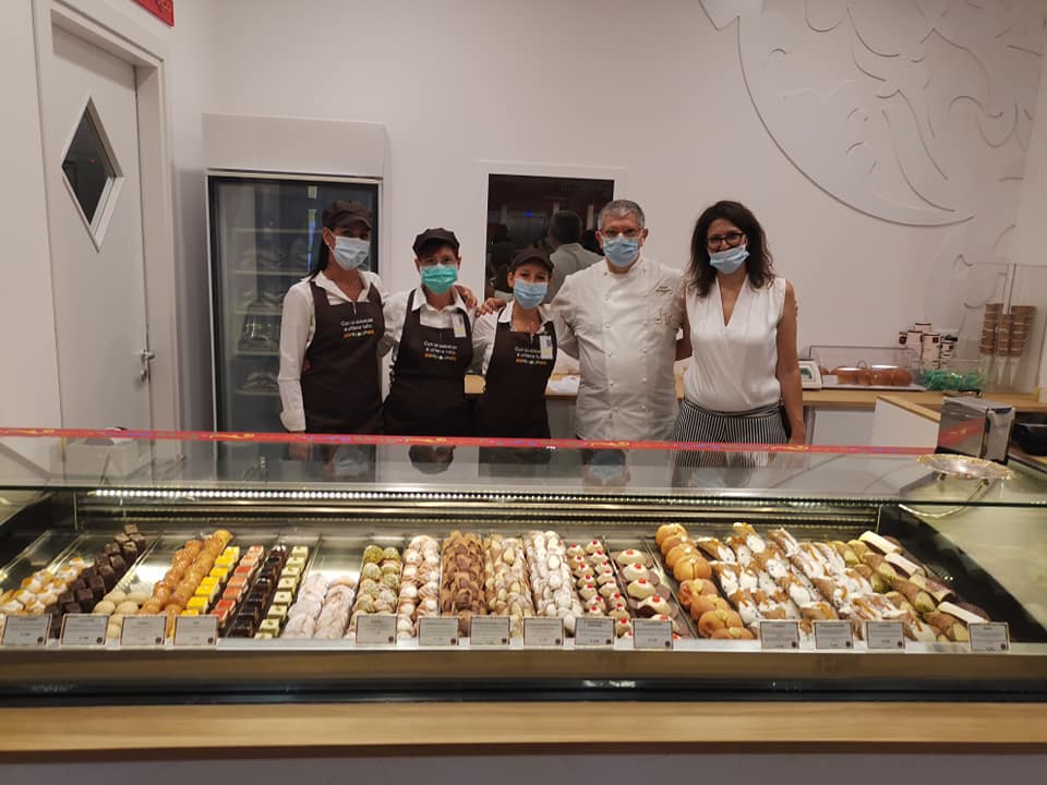 Nella nota pasticceria che, in quest’anno a dir poco unico, ha compiuto il centenario, il Maestro Santi Palazzolo, omonimo del nonno da cui ha ereditato la preziosa arte, porta avanti “una storia semplice ed importante  al contempo,  fatta di impasti, così duci e animi buoni, una storia difficile, in cui la resistenza è stata forgiata dal duro lavoro, dalle sveglie all’alba e da notti insonni, da cambiamenti importanti che non si ha avuto timore di fare, da sacrifici, feste mai godute e case comunicanti con i retrobottega. Una storia, anche, di figli che guardano i padri e lasciano tutto per aiutarli,  di collaboratori che diventano parte della famiglia, di dolci belli e buoni che ad ogni morso raccontano un po’ di chi li ha prodotti, per cento anni,  e continua a farlo oggi con immutata passione e abnegazione” ci racconta.