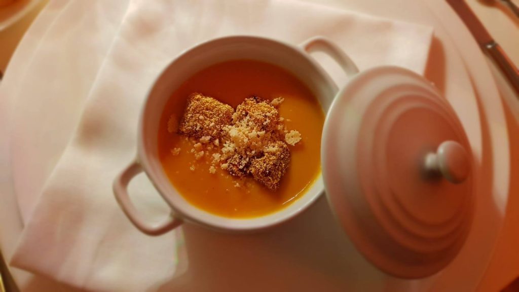 “Per la prima cena degustazione, ho proposto un piccolo assaggio della bella stagione, con piatti leggeri dai sapori freschi e con un grande gioco di consistenze”, racconta Gessi.