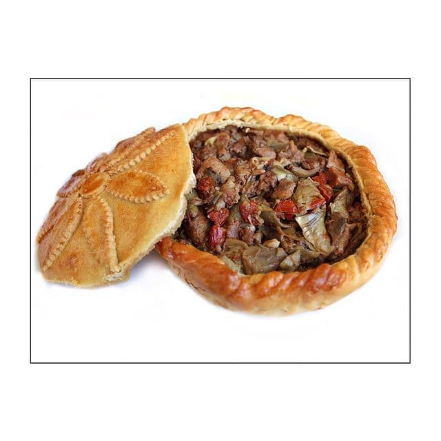 la panada con agnello e carciofi. L’agnello viene cucinato in umido e, a parte, i carciofi tagliati a listarelle e saltati in padella con aglio, prezzemolo e una spruzzata di vino bianco. Il pane per creare la panada è a base di semola rimacinata, strutto, sale e acqua e, una volta creato l’impasto, si da la forma di una sorta di pentola all’interno della quale vengono posti tutti gli ingredienti cucinati precedentemente e coperti poi con un coperchio di pane accuratamente cucito. Si inforna e si lascia cucinare finché la pasta non diventa dorata.