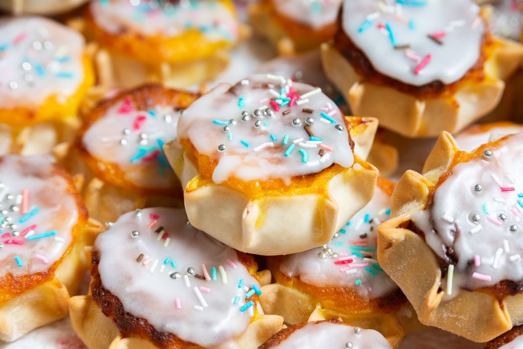 Andiamo nell’estremo sud ovest dell’isola, prendiamo il traghetto e sbarchiamo a Carloforte, nella splendida isola di San Pietro. La sua enogastronomia, come anche quella di Calasetta, è definita tabarchina ed è fortemente influenzata dalla cultura ligure. È così anche per la cucina di Pasqua, che vede come protagonista un dolce chiamato ‘u cavagnettu, a base di farina, strutto, lievito, uova e zucchero. È l’impasto classico del canestrello, che assume poi nomi e forme differenti a seconda della ricorrenza. Quello pasquale è formato da una sorta di manico ed è arricchito con la presenza dell’uovo.