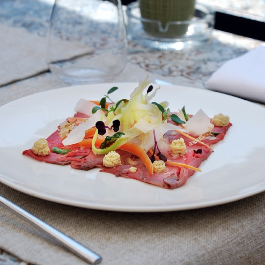Una cucina creativa e fortemente mediterranea, un’attenta selezione di piccoli produttori e una forte attenzione a privilegiare l’allevamento italiano ed etico, una filiera pulita di approvvigionamento degli ingredienti della cucina. Tra le specialità, il Polpo tre cotture, vellutata di ceci,crumble di olive taggiasche, acciughe cantabriche e pomodorini confitati e i Paccheri di Gragnano cacio e pepe, carciofi e menta.