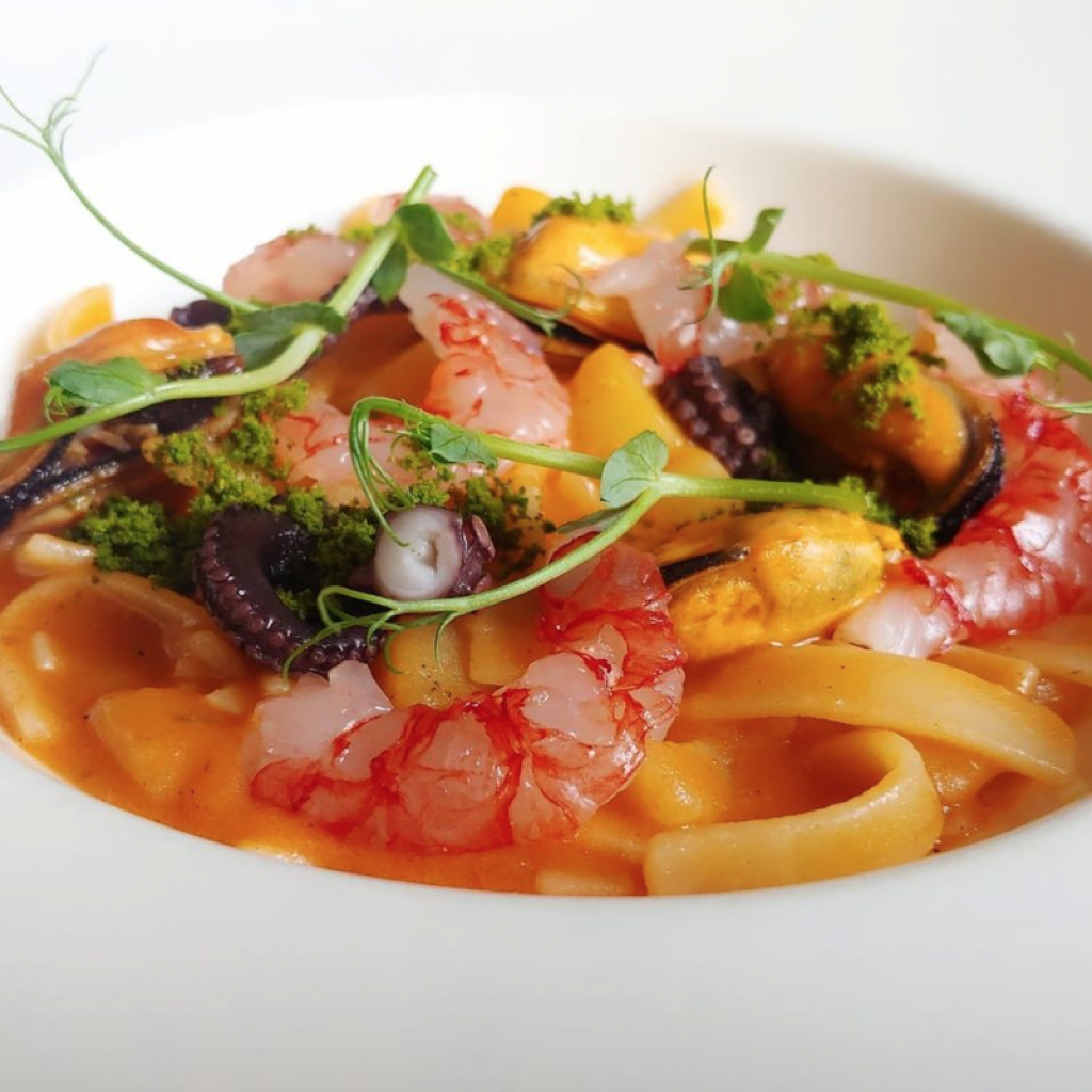 Tra le specialità, che mixano terra e mare, i Cavatelli “Gerardo di Nola”cacio, pepe, ricci di mare e lime e la Ricciola scottata, zucchine alla scapece, crudaiola di asparago bianco e aglio dolce. Nota di merito per i dolci: non perdete un assaggio delle brioche col “tuppo” di scuola siciliana, appena sfornate.