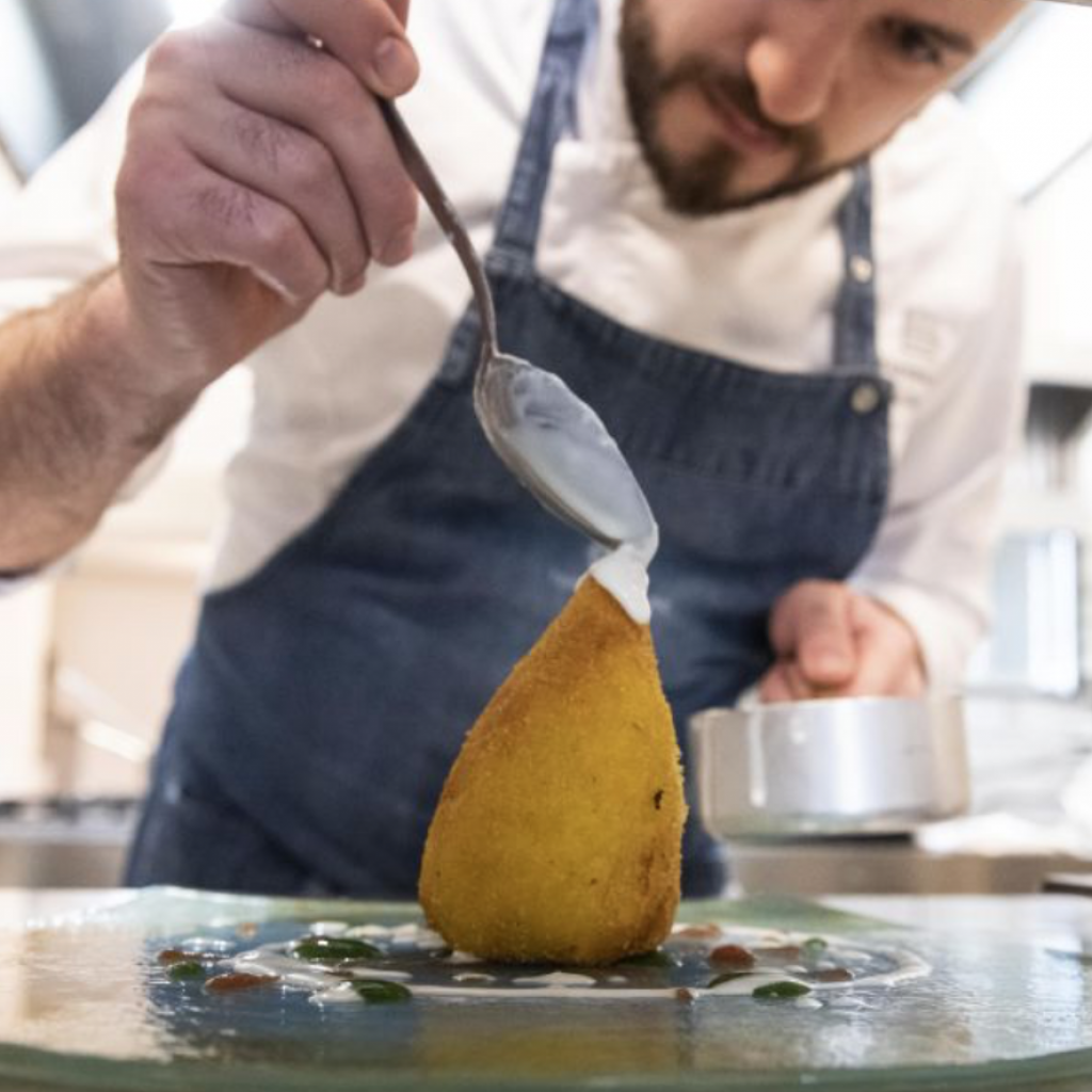 La cucina ha solide basi nella tradizione siciliana, ripensata in piatti leggeri, attuali, ricchi di gusto. Lo Chef Barone porta avanti da oltre 35 anni un progetto di cucina creativa e mediterranea e il suo viaggio continua con passione autentica.