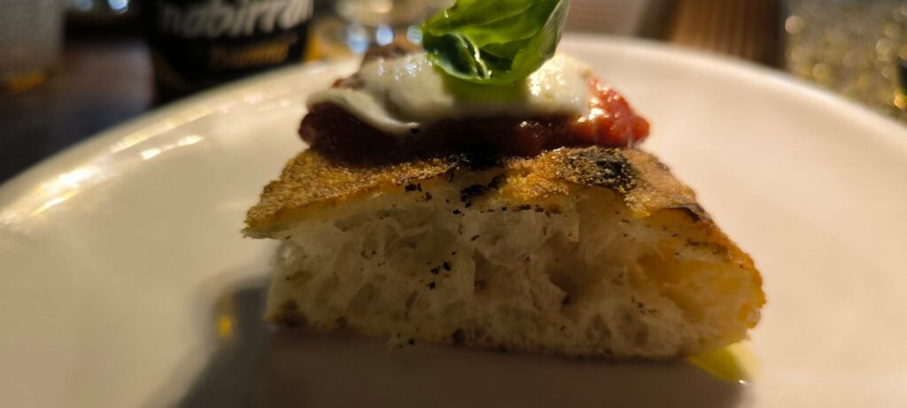 Il percorso gastronomico ideato da Mascarella e dal suo staff è stato pensato per mettere a nudo il racconto della crescita professionale e gastronomica dell’attività, proponendo un menu degustazione in quattro portate che, assaggio dopo assaggio, ha saputo narrare la crescita e l’evoluzione gastronomica della cucina del ristorante, attraverso l’impasto pizza come filo conduttore, ingredienti di eccellenza e abbinamenti studiati ad hoc. Ogni proposta è stata infatti accompagnata da un drink o da una birra del birrificio Nabbirah di Caccamo , partner dell’evento.