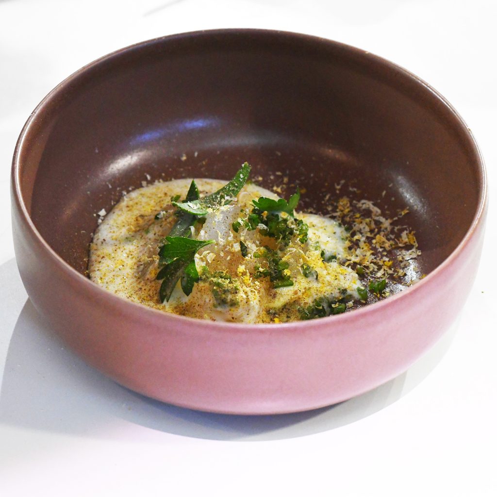 Il giovane chef abruzzese in gara ha portato: come ricetta 0 cotture “La Mugnaia di Mezcal” una sogliola cotta per finta in acqua fredda e come ricetta a lunga cottura “Come un agnello alla brace” un gioco di parole dove ha sostituito una rana pescatrice al posto del carpaccio di manzo e la rapa rossa.