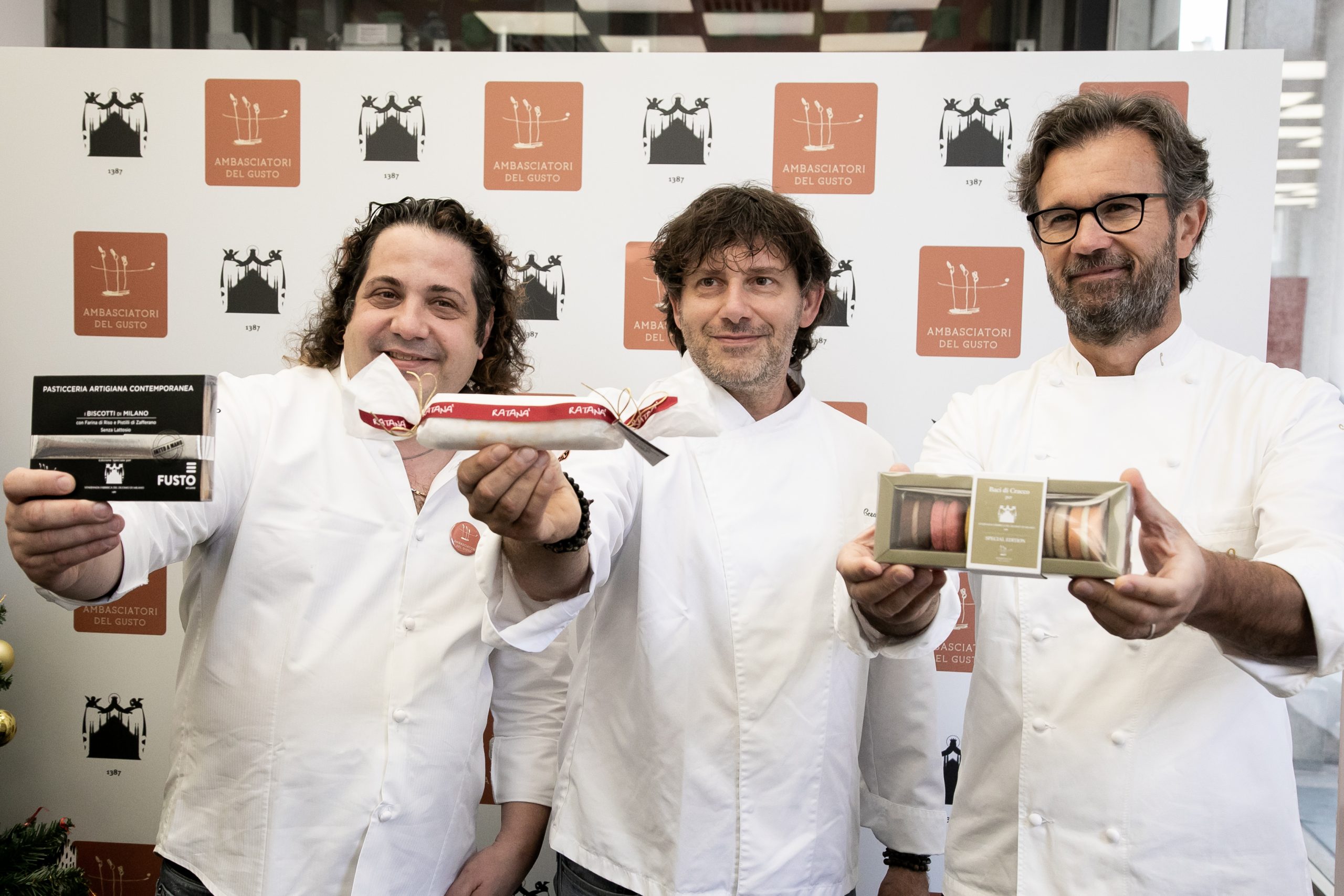 I primi tre Ambasciatori del Gusto protagonisti del progetto sono Cesare Battisti, Carlo Cracco e Gianluca Fusto. Per l’occasione, anche in vista delle imminenti festività natalizie, presentano un trittico d’autore all’insegna della dolcezza: Il Torrone del Ratanà, I Baci di Cracco e i Biscotti di Milano.