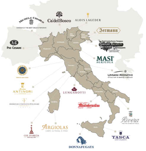 Le casa viticoltrici che formano il nucleo dell’Istituto Grandi Marche sono 18. Sono accomunate dalla tradizione storica della produzione del vino, dove alla guida dell’azienda c’è la famiglia. L’obiettivo principale è quello di promuovere cultura attorno al mondo del vino di qualità italiano. La presidenza è della Cantina Campana di Mastroberardino, nella persona di Piero Mastroberardino. Sono rappresentate dodici regioni del territorio italiano da nord a sud con le iconiche cantine di: Alois Lageder, Ambrogio e Giovanni Folonari Tenute, Antinori, Argiolas, Ca’ del Bosco, Carpenè Malvolti, Col D’Orcia, Donnafugata, Jermann, Lungarotti, Masi, Mastroberardino, Michele Chiarlo, Pio Cesare, Rivera, Tasca d’Almerita, Tenuta San Guido e Umani Ronchi.