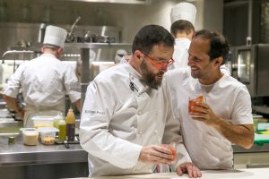 Al fianco dello chef Morelli, Pedro Miguel Schiaffino. “Ho conosciuto Giancarlo Morelli diversi anni fa nel mio ristorante a Lima, il Malabar – spiega lo chef Schiaffino -. Ricordo che era rimasto molto colpito da quello che aveva mangiato, in particolare dalla Chonta, un piatto semplice fatto con il cuore della palma, e dopo cena ci siamo intrattenuti a chiacchierare. Gli ho raccontato del mio trascorso lavorativo in Italia e quando, l’anno successivo, è tornato in Perù, mi ha coinvolto in una cena. Da lì è nata la nostra amicizia che dura ancora, e che mi ha portato qui al Morelli a Milano per due cene a 4 mani.»