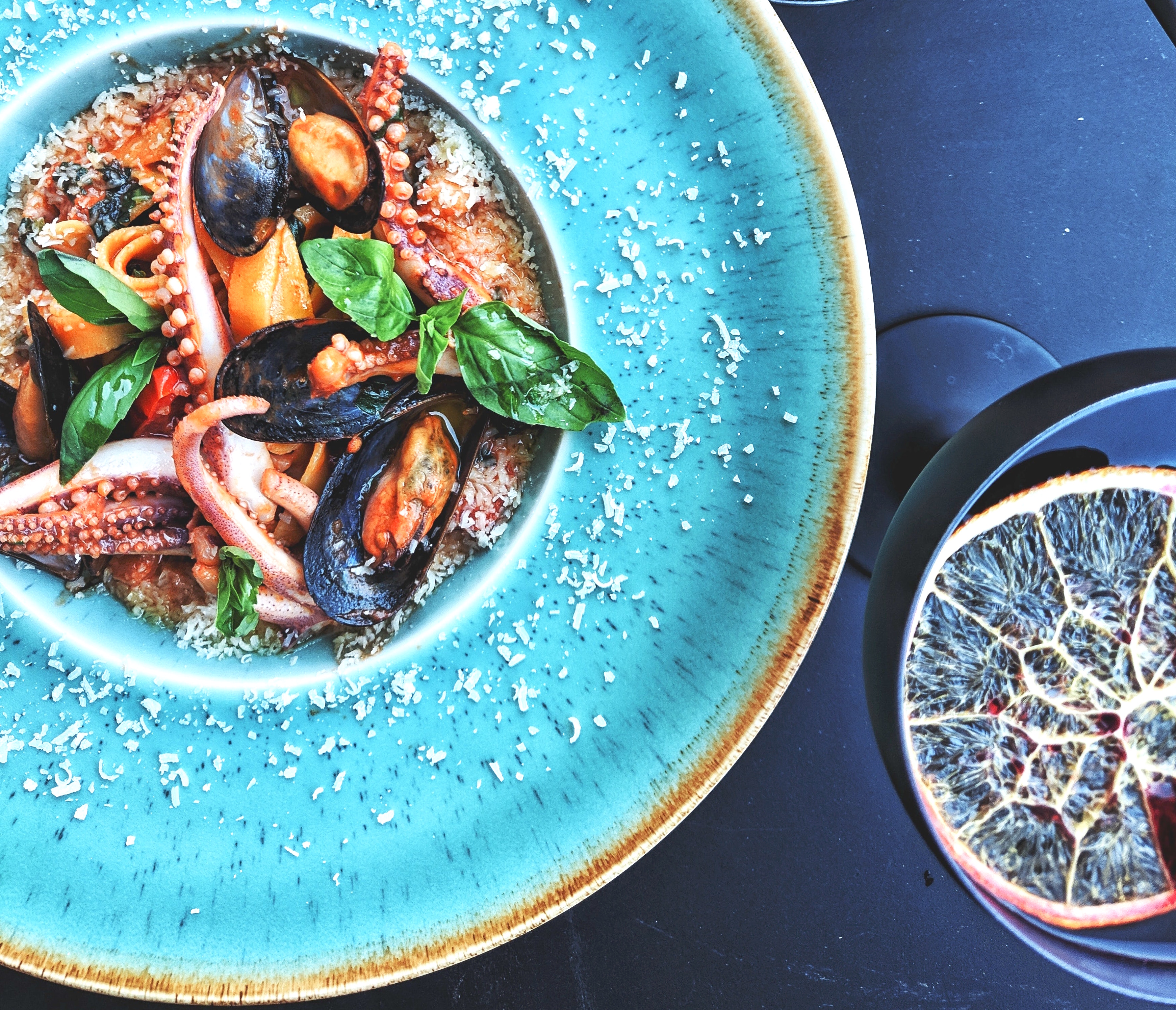 Ritrovo e meta affidabile, il menu spazia dai sapori classici a quelli più moderni e comprende numerosi piatti a base di pesce fresco. La cucina, inoltre, garantisce sempre la qualità e la freschezza delle materie prime utilizzate, prodotti locali e ricette “everblue” come le bruschette, paste fritture, soute, brodetti, marinati e crudi.