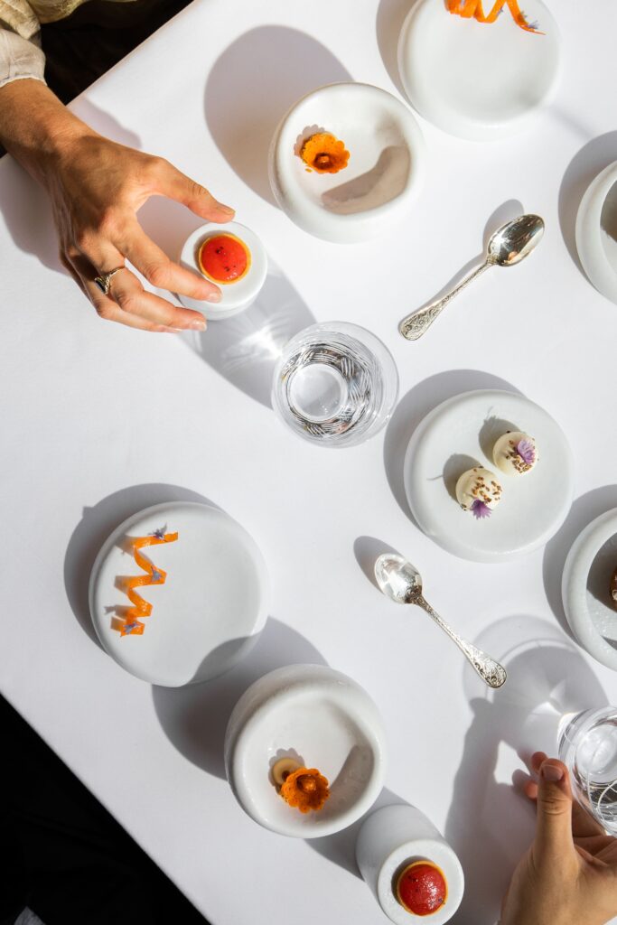 Un’accoglienza che prevede anche l’utilizzo di piatti realizzati a mano (in molti casi su disegni dello chef, come il nuovo piatto per il 2024, una rosa, ispirato dai rigogliosi giardini di Villa San Michele), bicchieri soffiati e posate in argento raffinato dello storico marchio Christofle.