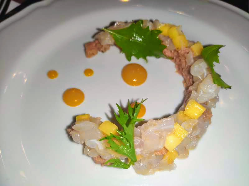 In particolare il piacevolissimo Crudo di Manzo, pomodori confit, senape e creme fraiche, o in alternativa l‘eccellente Tartare di Pesce bianco e salsa al Mango. Una tartare di spigola adagiata su una panzanella liquida, con gel al mango. Piatti estremamente puliti e dotati di un’intima eleganza. Ma ci sono anche altre entreè molto sfiziose. Tra queste l’Uovo Pochè, Gorgonzola, Galletti e Nocciole, oppure gli Occhi di Canna Fritti, Porro e Maionese al pomodoro. Tra i primi troviamo le Linguine, Astice e Limone. Un piatto semplice e raffinato a base di bisque d’ astice, astice saltato nella pasta, limone candito, gel di limone e basilico viola. Da poco in carta e già destinato a diventare il signature dish del “Salotto”.
