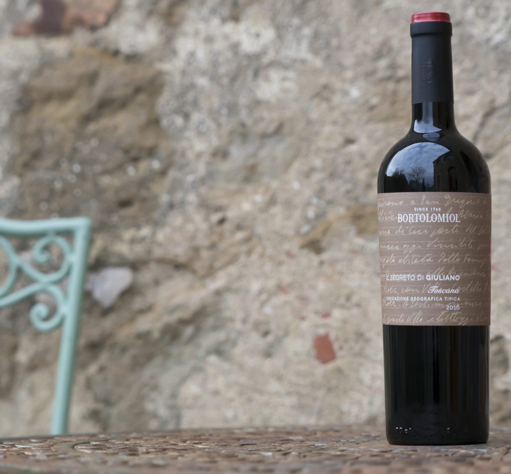 Viaggiando attraverso il mondo del vino, da Valdobbiadene alla Toscana, ai limiti del territorio del Brunello, Bortolomiol, la storica realtà e punto di riferimento del Prosecco Superiore, ha intrapreso dunque la strada dei grandi rossi scegliendo un vigneto antico all’ombra del medievale Castel Verdelli. Il Segreto di Giuliano è un Sangiovese di razza, con un 15% di Alicante, affinato per un anno in barrique in legno di rovere francese. La prima annata de Il Segreto di Giuliano, del 2016, conta solamente 2.675 bottiglie e porta la firma del winemaker Roberto Cipresso.