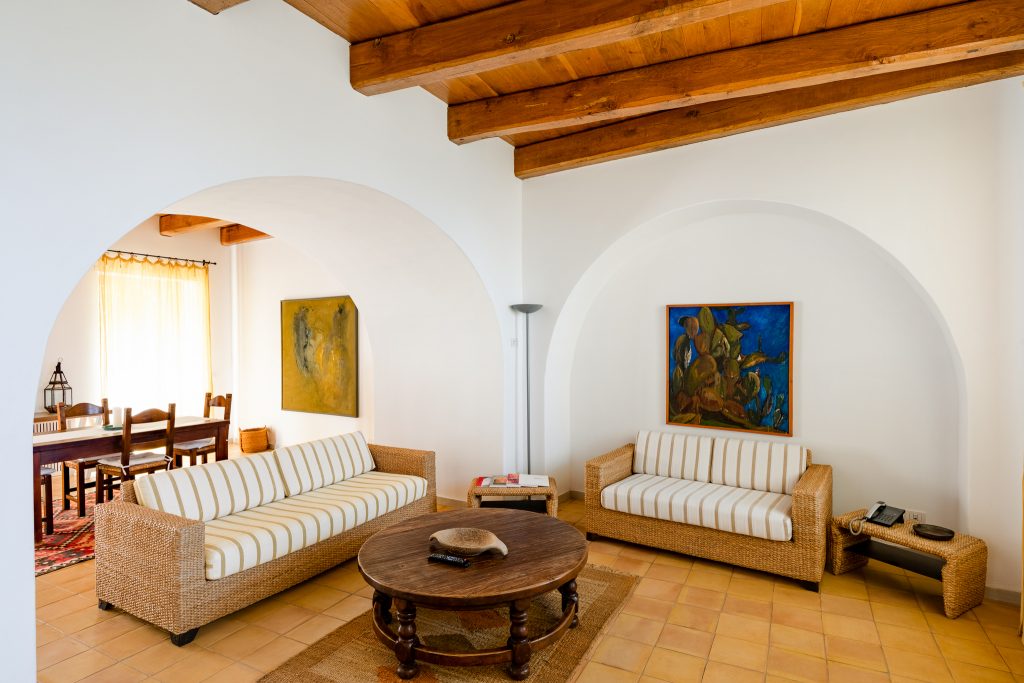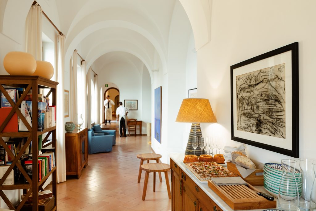 Un’austera fortezza con l’atmosfera di un antico convento, quello delle Clarisse. Abitare il silenzio. Nelle stanze del Monastero, semplici, mediterranee, “ci sono gli agi del nostro millennio, ma c’è spazio per i pensieri”. Complice anche la vista che consente di spaziare con gli occhi e con le sensazioni.