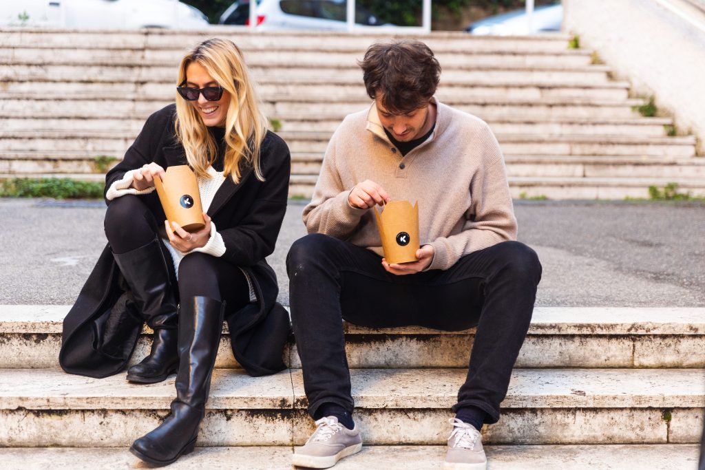 Ma non è tutto. Fiore all’occhiello di Kikky è anche la sua attenzione alla sostenibilità. Il format è interamente plastic free, dal packaging alle stoviglie, realizzate in bambù compostabile, alle bibite vendute in vetro o alluminio.