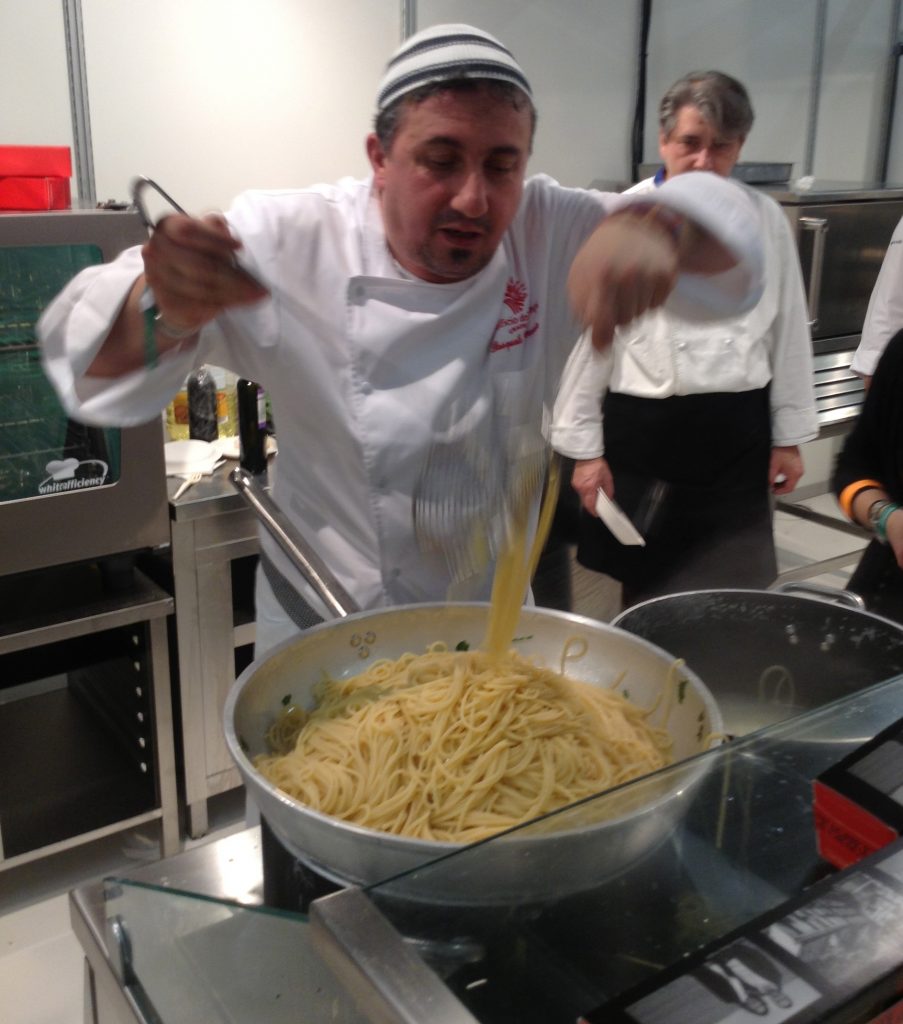 La colatura di alici è tra gli ingredienti più complessi e impegnativi della cucina italiana. Pungente, umami, ovvero carica di sapidità. Di quell’intensità di gusto che non conosce paragoni. Per utilizzarla in cucina, è necessario un pizzico di creatività. Apertura mentale nel voler concedere al palato un po’ di tumulto emozionale e poi estrema precisione nel dosaggio. Per questo motivo, niente potrebbe celebrarla meglio di un piatto di spaghetti cucinati alla maniera di Pasquale Torrente, chef patron del ristorante Il Convento a Cetara. Un piatto semplice, pochi ingredienti da maneggiare con estrema cura.