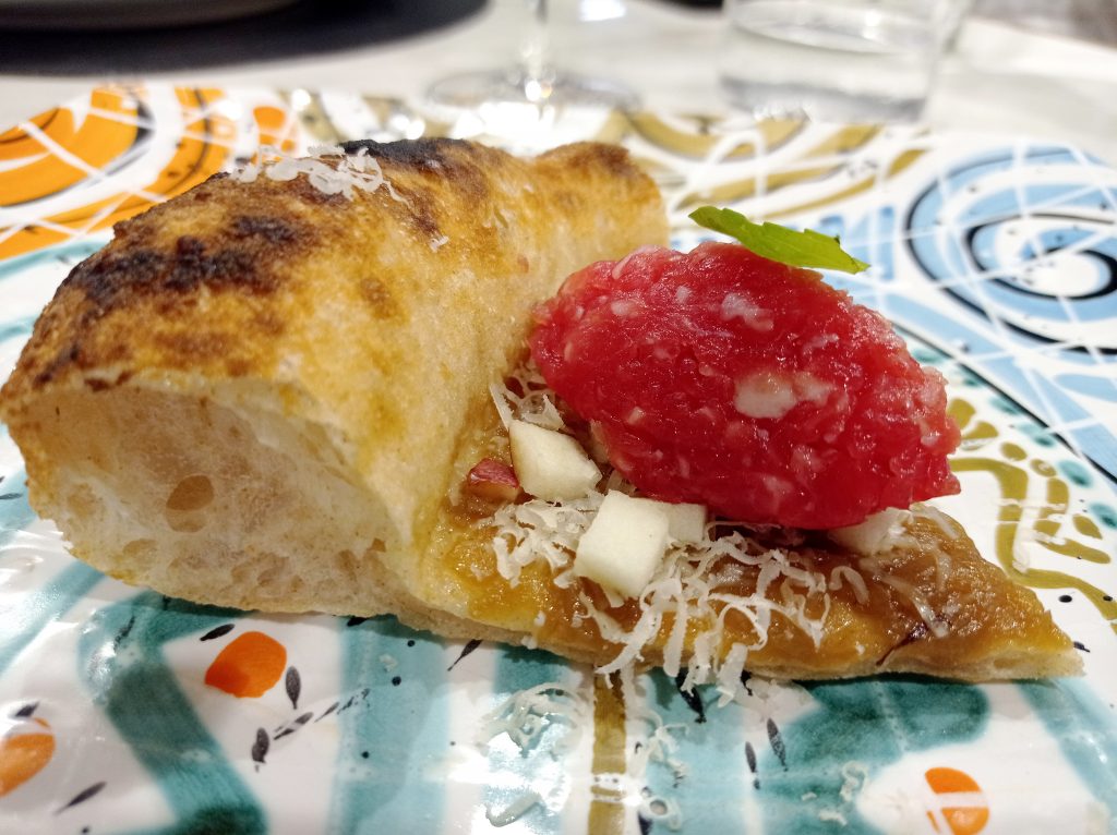 E per dare la dimensione dell’ottimo rapporto qualità-prezzo, la Margherita classica qui costa 6 euro, nonostante il pomodoro San Marzano, il fior di latte di Jersey, e l’olio extravergine di oliva delle colline salernitane. Dalle basi, fino alle creazioni più intriganti. Per esempio, la Mast’Mario in Oriente, con crema di patate affumicate, fior di latte di Jersey, pancia di maiale laccata alla salsa di soia, cipolla rossa di Tropea, prezzemolo e olio extravergine di oliva delle colline salernitane. Prezzo in menu, 16 euro. Una pizza che parla di oriente e occidente che stavolta non sanno scontrarsi, ma esaltarsi all’inverosimile.