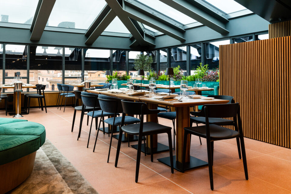 In posizione panoramica, all’ultimo dei sette piani della struttura che chiude via Salaria e ricompone Piazza Fiume, si respira tutta la bellezza di uno spazio interamente dedicato all’eccellenza gastronomica affidato al sapiente operato di Enoteca La Torre Group, cui fanno capo altri indirizzi di grande charme enogastronomico: Enoteca La Torre Villa Laetitia, Enoteca La Torre Prati a Roma, Enoteca La Torre – La Dogana a Capalbio.