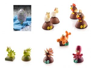 Il maître chocolatier e chocolate designer Davide Comaschi, direttore del Chocolate Academy Center Milano, ci propone una moderna versione del classico uovo di Pasqua. L’artista plasma la materia come un contemporaneo Antoni Gaudì, creando una forma avveniristica dai colori oltremarini, così che il tradizionale uovo si trasforma in un vero e proprio mosaico in burro di cacao e cioccolato bianco belga Callebaut. Alberto Simionato, resident chef del Chocolate Academy Center Milano, invece suggerisce per la Santa Pasqua soggetti divertenti e colorati dedicati ai bambini. Per scoprire tutti i corsi della Chocolate Academy si può cliccare qui.