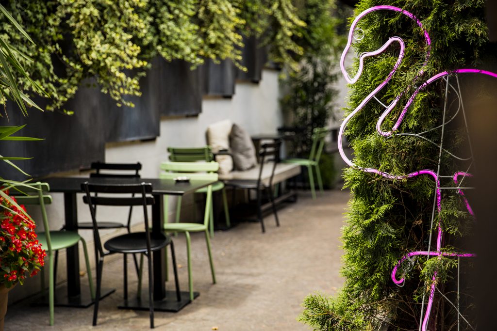 Piante verdi, cuscini colorati, comode sedute e fenicotteri rosa sparsi ovunque. Questa l’atmosfera che regna sovrana da Vintro, vera e propria oasi di relax in viale Jonio, nel quartiere Montesacro.