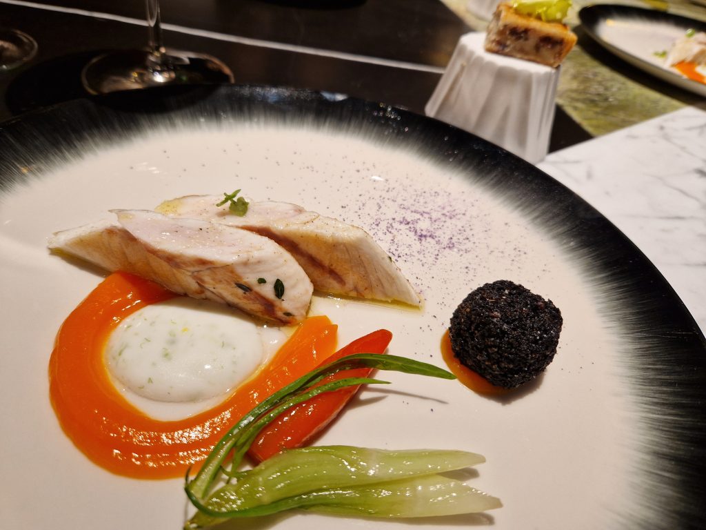 In alternativa, “Le radici”, ovvero un percorso di terra da sette portate al prezzo di 80 euro (vini esclusi). Per i più morigerati, si può optare per un menu ridotto da cinque portate. Noi abbiamo scelto il mare: leggerezza ed incisività, chef Sangiovanni ha previsto un menu che si fa amare dal principio e che continua a crescere strada facendo. Dopo una serie di eccellenti (e divertenti) finger-food di benvenuto, arrivano pani e dintorni da gustare con l’olio extravergine di oliva di produzione propria, e con un formidabile burro di bufala: se non siete capaci di controllarvi, non assaggiatelo.