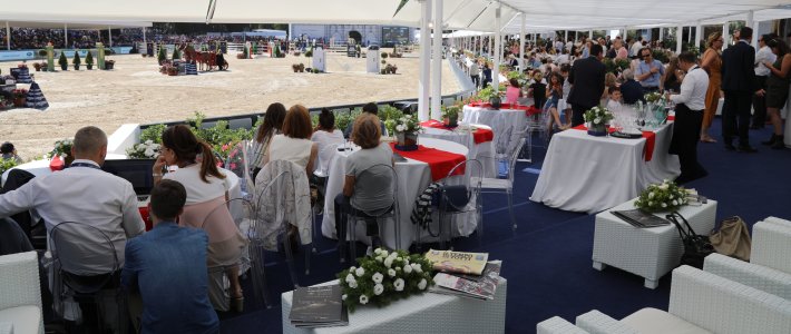 La sera del 24 maggio, dalle 20.00, in poi tutta l’area di Piazza di Siena sarà riservata a un evento esclusivo dedicato all’alta cucina e ai campioni del dressage: “Dressage con le Stelle” durante la quale sei dei migliori chef di Roma, cucineranno dal vivo per i presenti e, contemporaneamente, tre campioni di dressage si esibiranno in tre momenti diversi per un emozionate spettacolo sportivo.