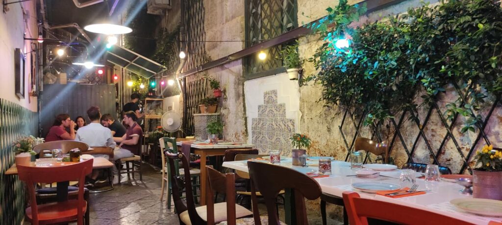 Tra gli antipasti da gustare nel baglio dalle magiche atmosfere arabeggianti consigliatissimo l’hummus con “capuliato” di pomodoro secco accompagnato da crostini di grano duro. E poi polpettine di melanzane con mentuccia su tartare di pomodoro conditi con ricotta fresca in scaglie, caciocavallo pastellato con miele. Da non perdere, il classico “coppino” di street food con panelle, crocché e “rascatura”.